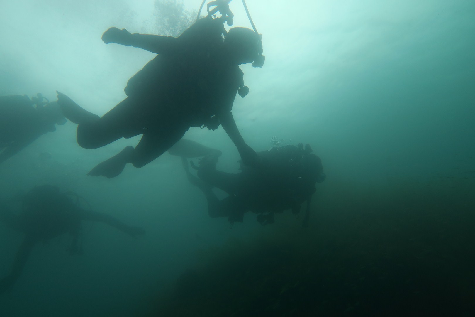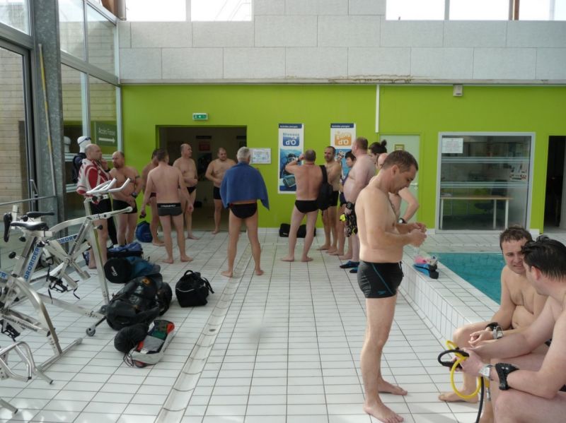 Match de hockey subaquatique entre les crapauds baveux et les canards boiteux. Les tribunes étaient combles......